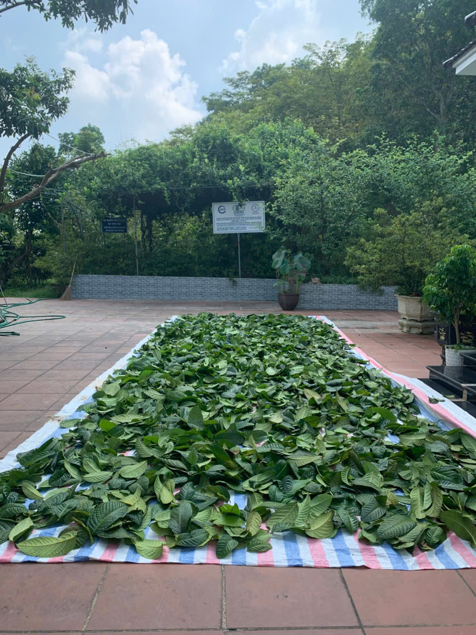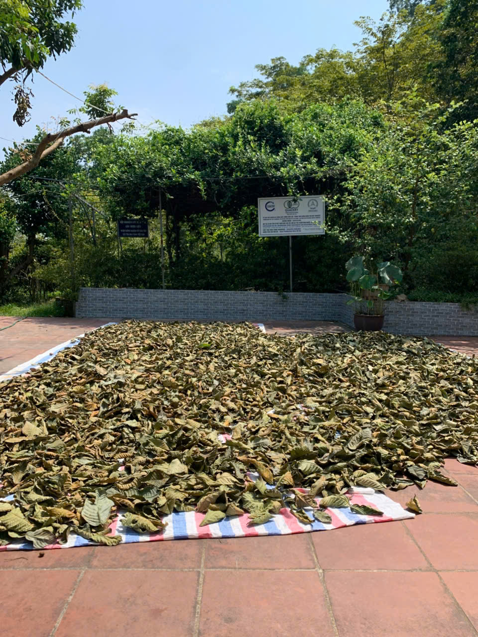 | 122 | Phơi sấy thủ công - Sau khi thu hoạch, lá trà được phơi trên lớp bạt dứa và cách ly với khu vực chăn nuôi. Tổng khối lượng thu hoạch lá tươi 5/8/2025: 34kg |