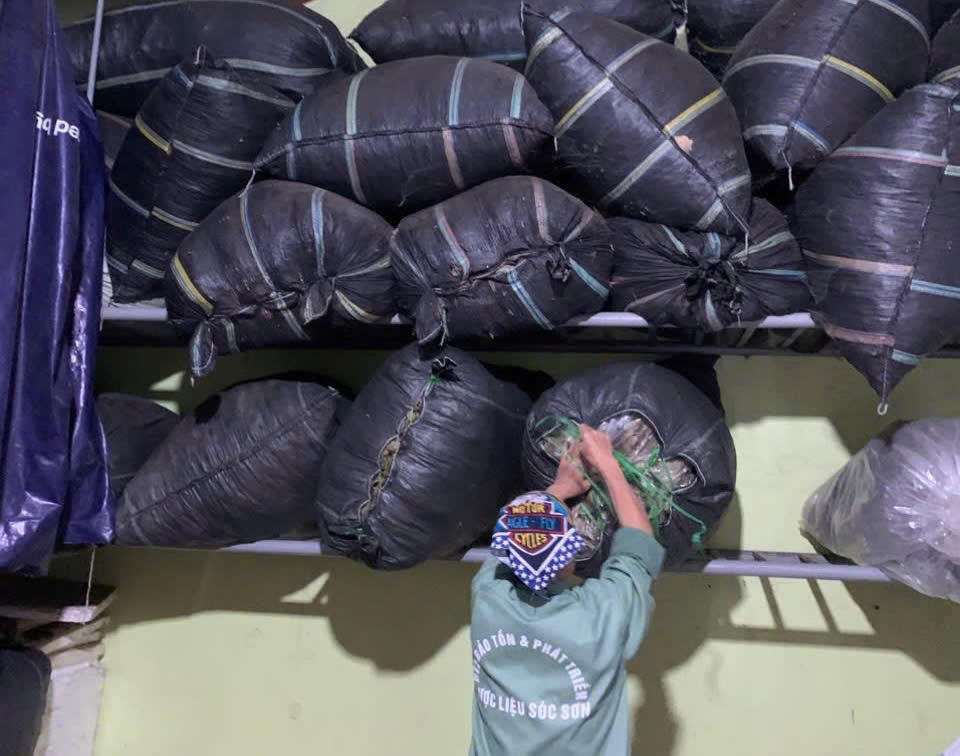 | 131 | Nhà kho bảo quản - Nhập kho tổng khối lượng thu hoạch lá Trà hoa vàng sau các đợt thu hoạch là: 75 (Kg). Lá trà được đóng trong bao nilon trong suốt và đựng trong bao tải dứa rồi xếp lên giá riêng biệt trong kho chứa dược liệu. |