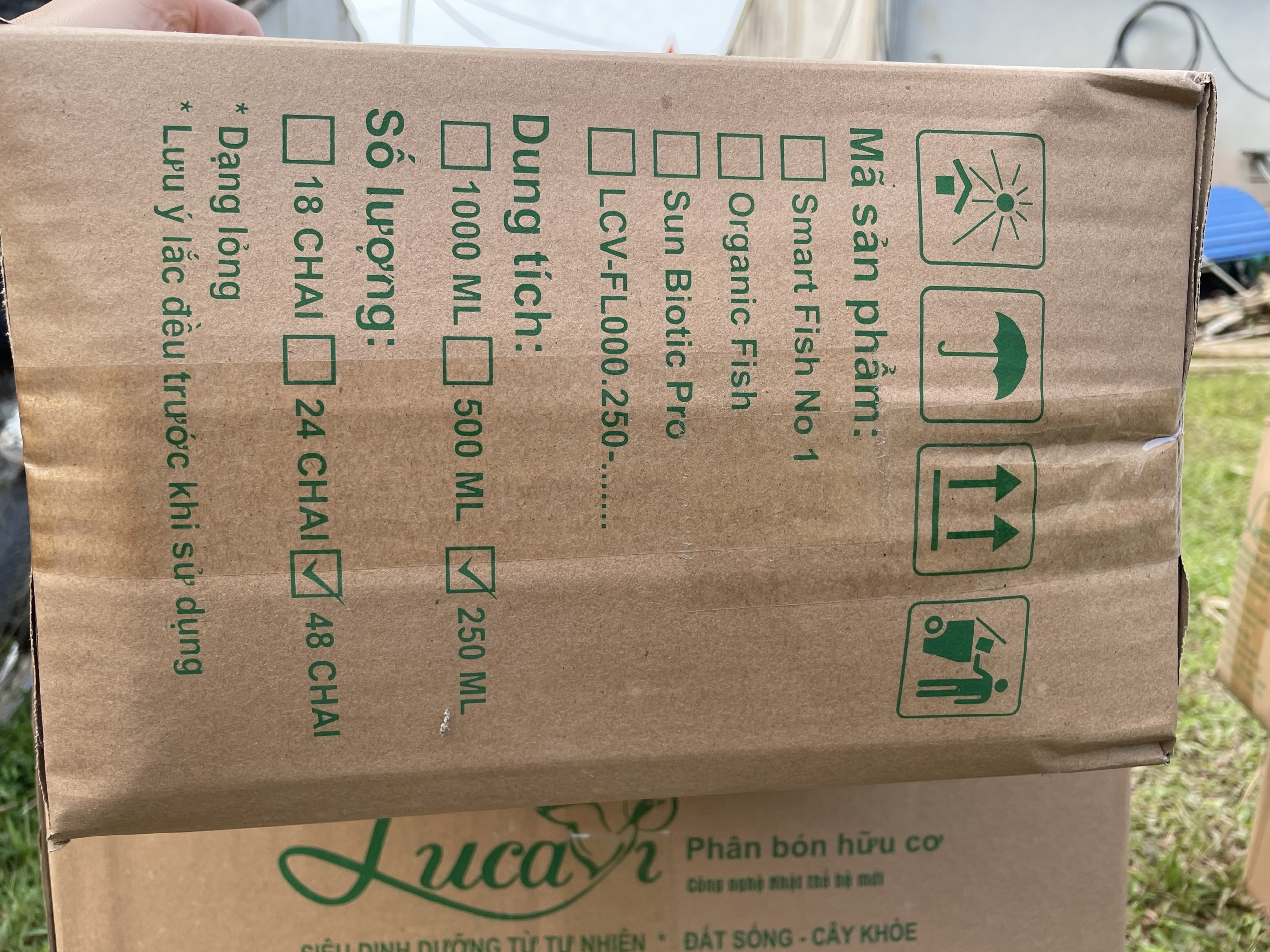 | 134 | Phân hữu cơ - Nhập kho phân bón hữu cơ Lucavi. Khu 1 nhập kho 4 thùng phân Organic Fish (Thùng 4 chai 5L) tổng 80 Lít và 2 thùng Organic Fish kích nụ (Thùng 4 chai 5L) tổng 40 Lít. |