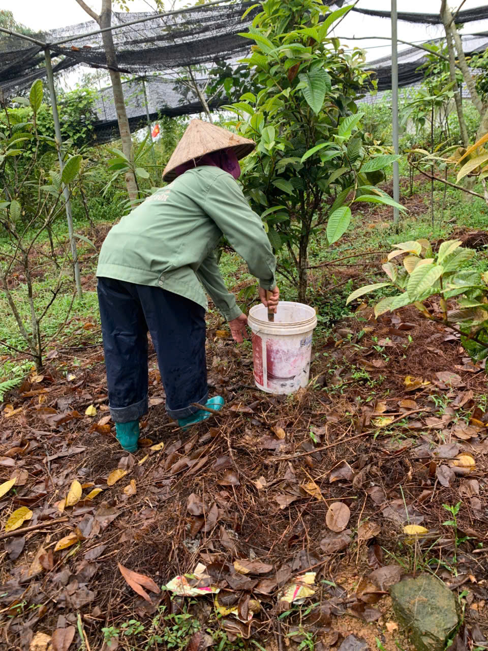 | 102 | Thao tác kỹ thuật - Tiến tục tiến hành bón phân, xới xáo vun gốc và lấp phân cho một số khu vực cây Trà Hoa Vàng nhằm đảm bảo giảm thiểu thất thoát lượng phân bón do cỏ dại và thời tiết. |
