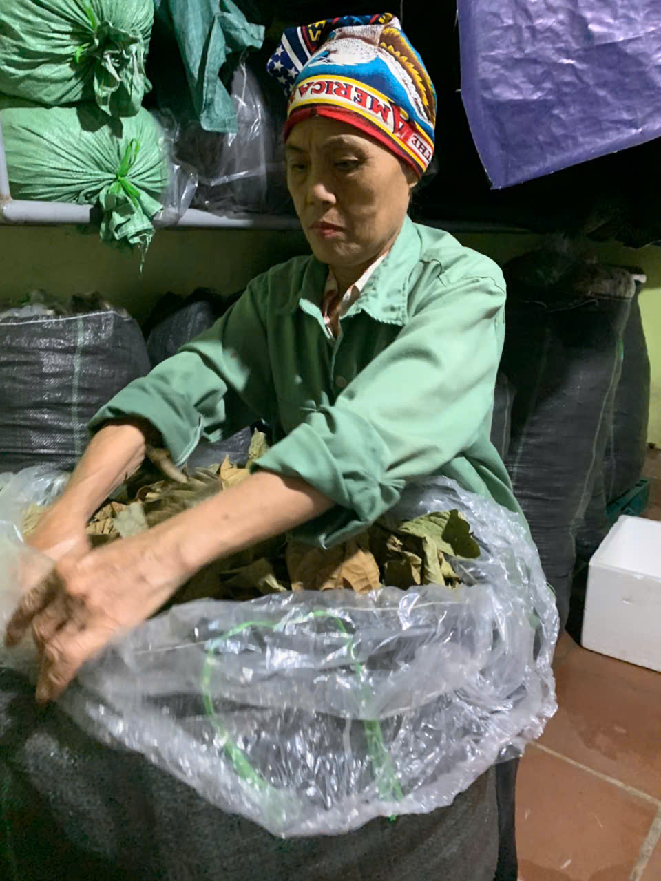 | 11 | Nhà kho bảo quản - Nhập kho tổng khối lượng thu hoạch lá Trà hoa vàng sau các đợt thu hoạch là: 19 (Kg). Lá trà được đóng trong bao nilon trong suốt và đựng trong bao tải dứa rồi xếp lên giá riêng biệt trong kho chứa dược liệu. |